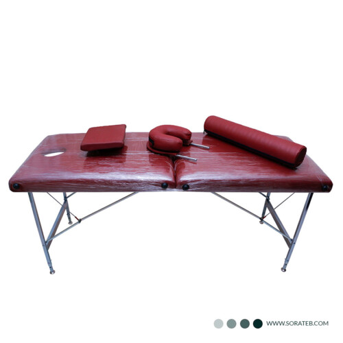 تخت ماساژ تاشو پرتابل پایه استیل یک تخت ماساژ تاشو و قابل حمل است که وسیله ای بسیار مناسب برای ماساژور های سیار می باشد . این تخت یک شکن می باشد ، به این معنا که تخت دارای یک لولا در مرکز تخت بوده که بوسیله ی این لولا می توان تخت را تا کرد . همچنین پایه های این تخت نیز تاشو هستند و با خود تخت تا شده و به شکل چمدان در می آیند . جنس پایه های تخت استیل می باشد که مقاومت و دوام تخت را دوچندان می کند .