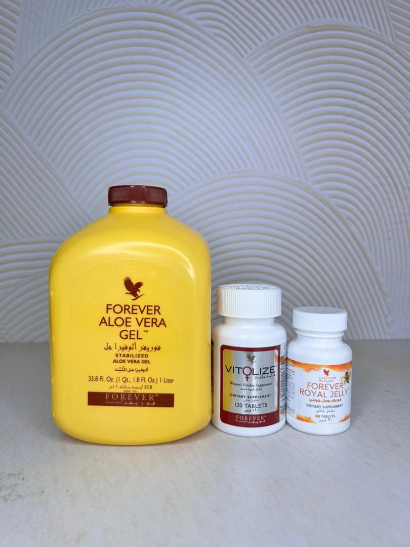 ترکیب سه مکمل تخصصی فوراور: ویتولایز زنان، رویال ژل و نوشیدنی آلوئهورا